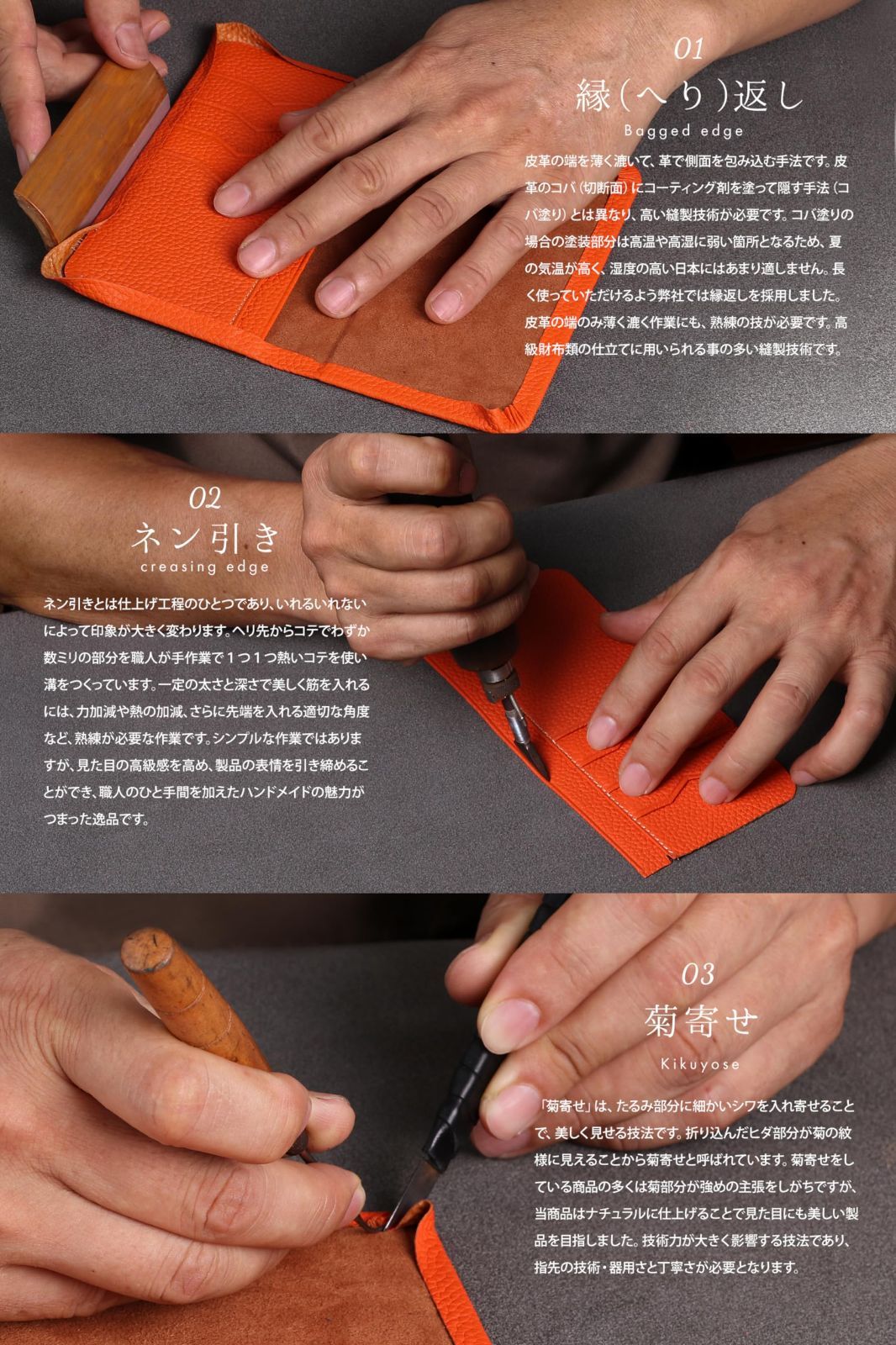 熟練の職人が手作業で丁寧に全工程を仕上げています。 効率の良さよりも品質の高さを追求した、丈夫で美しいアイテムです。