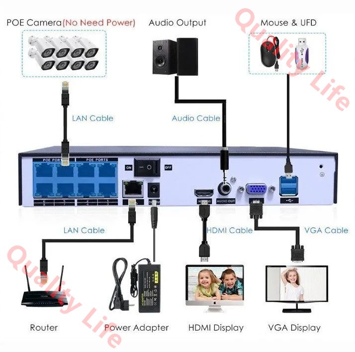これは 2025 年に最新で製造された POE 監視セットです。監視カメラのケースは金属材料を採用しており、防塵防水機能を備えています。入札に成功した場合、我々は追加でハードディスクを 1 つプレゼントします。ご利用の際のデータ保存に便利です,残りの付属品は、図 2 をご覧ください