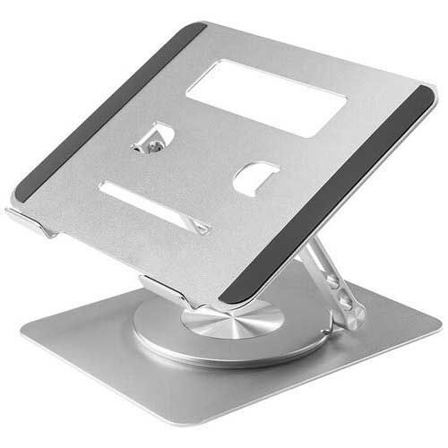 360°回転できるノートPCスタンド。360°回転式だから、好きな角度に調整できる。●外形寸法(幅)(mm):258●外形寸法(奥)(mm):275●外形寸法(高)(mm):34~260●質量(g):940●対応機種:11~17インチでのノートパソコン、タブレット●耐荷重(kg):3●角度調節:無段階●色:シルバー●材質:アルミニウム、ステンレス、シリコーン、POM