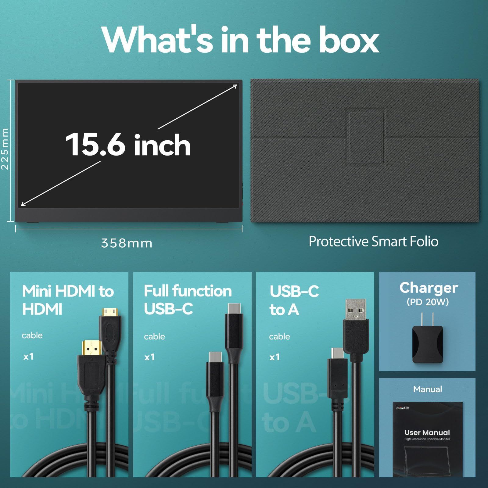 モバイルディスプレイは ゲーミング用やビデオ編集 映画鑑賞 デザイン作業に最適 薄型 軽量 HDMIポート搭載 - USB-C さらに多機能 Intehill CNCアルミボディ採用 2 ms応答速度 sRGB IPS FreeSync H