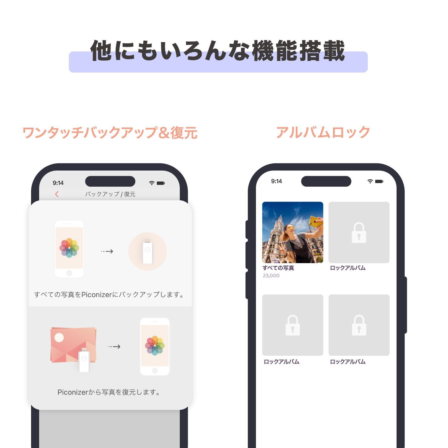 Piconizer 4 256 GB iPhone USBメモリ 写真 バックアップ Lightning タイプ USB-C データ保存 バイオレット MKP 4-PP-256 G