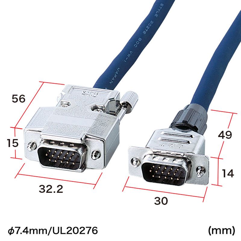 ■コネクタ:ミニD-sub(HD)15pinオス(インチネジ:4-40)(メタル処理コネクタ)-
