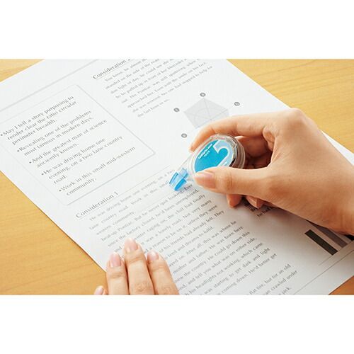 ●ヨコ引きタイプで業界最小サイズ(2008/11現在)●ヨコ引きタイプなので、ヨコ書き文字が消しやすい修正テープです。●修正テープが紙にしっかり密着する首振りヘッド方式を採用。●テープ幅は選べる4mm、5mm、6mmの3種類です。●本体デザインは、キレイなパステルカラー。男女問わず好まれる可愛いデザインになっております。●テープの長さは、ミニでもたっぷり使える6mです。●先端を保護するキャップ付きなので持ち運びにも便利です。●表面のシートをお好みの写真やイラストに入れ替えれば自分オリジナルの修正テープに!【検索ハッシュタグ】#修正テープ#修正#ケシピタ#青#ブルー