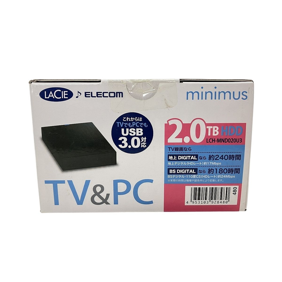 こちらは「LaCie ELECOM minimus TV&PC 2TB 外付けHDD 未使用 」でございます。