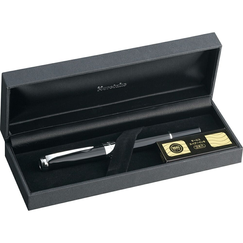 穂先にいたち毛を使用した本格的な万年毛筆。静寂に包まれた星月夜のような輝き…シックでエレガントなデザインは、凛とした気品を漂わせます。スペアーインキ式