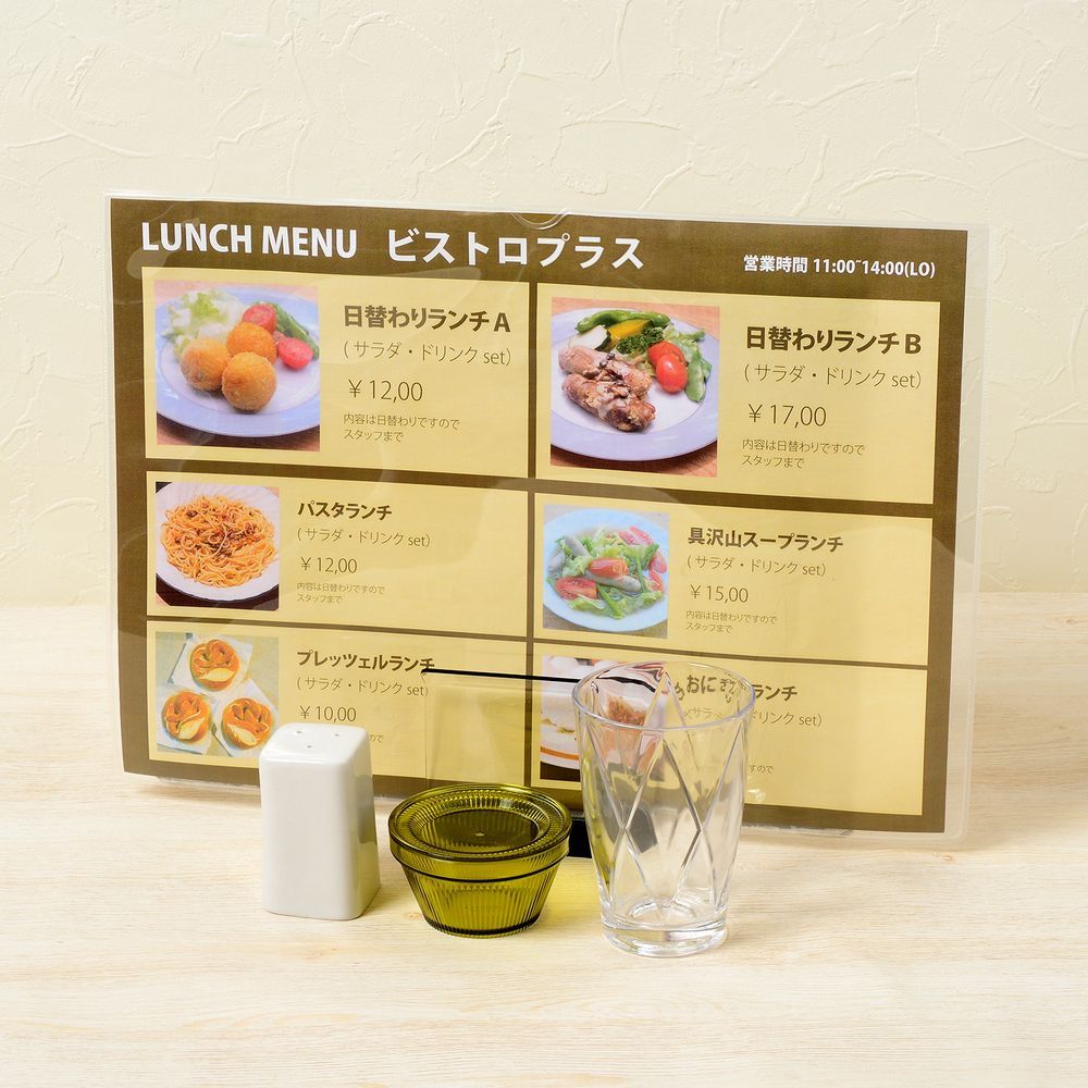 レストラン・カフェのメニュー表などにも便利です。