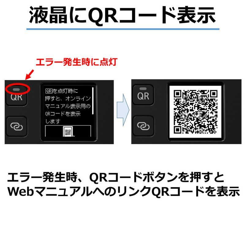 バイカラーで丸みを帯びた独特のデザイン。液晶画面に表示されるQRコードからWebマニュアルへと誘導します。