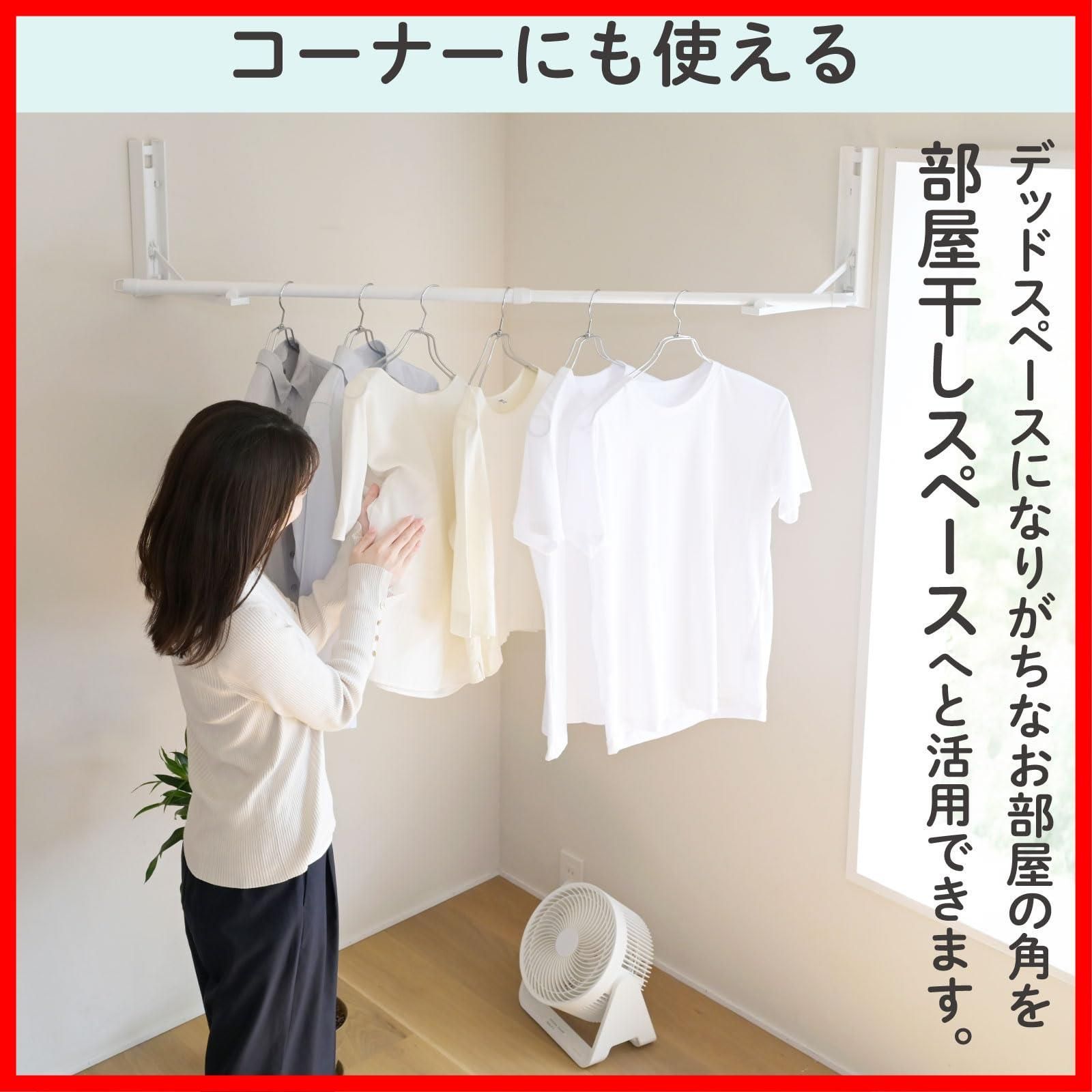 [山善] 室内物干し 窓枠物干し 物干し竿 室内 省スペース 洗濯物干し 伸縮 壁付け 日本製 (コーナーでも使える/取付け穴が目立たない) 耐荷重10kg 部屋干し 竿内寸最大2m 窓枠 梅雨 組立品 ホワイト NPH-8025(WH)