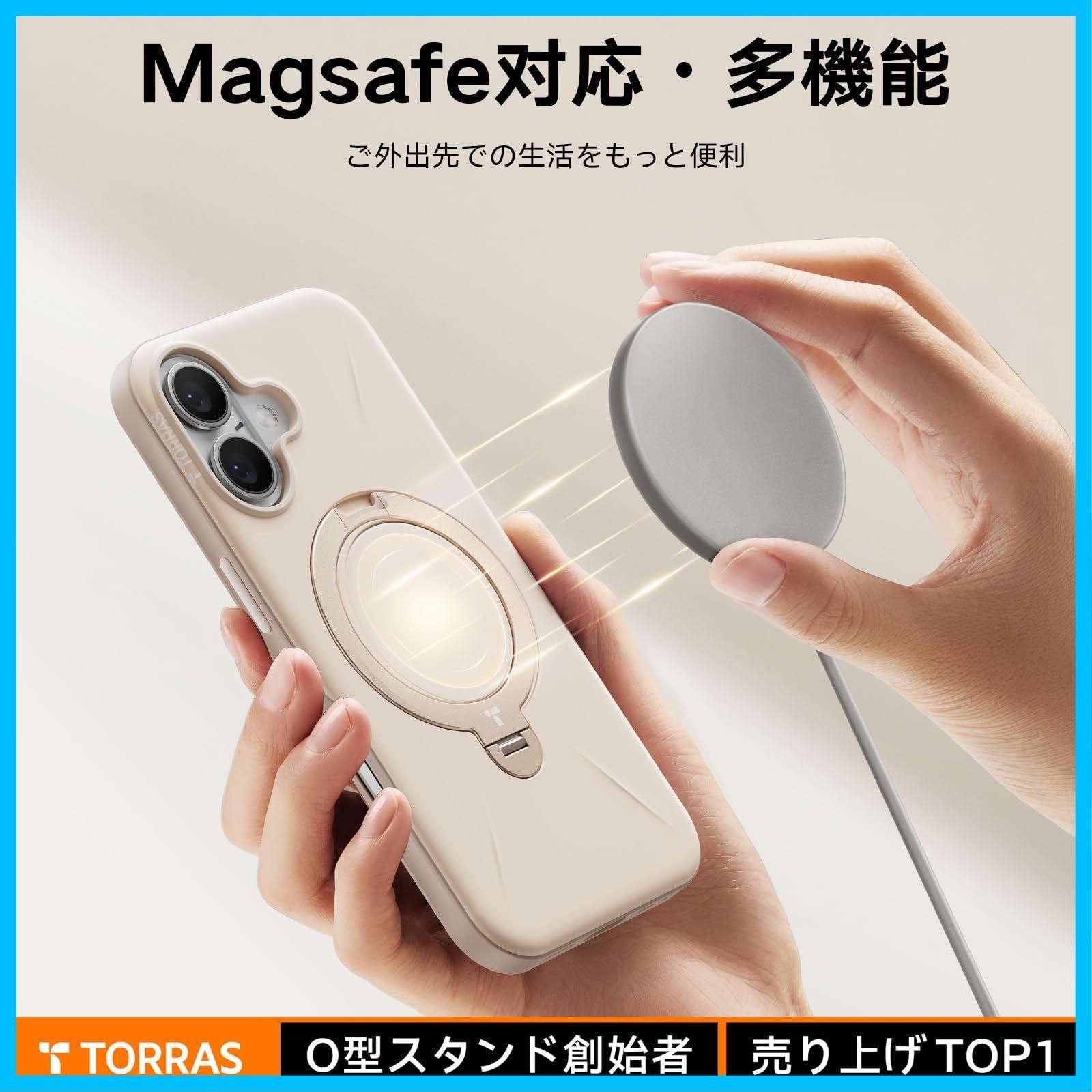 カメラコントロール対応 マグネット搭載 ゼンマイ式スタンド 縦横両対応リング ケース 米軍耐衝撃 用 ストラップホール付き 16 6.1インチ Ostand iPhone Spin なデザイン TORRAS Fusion ミルクティー 新型