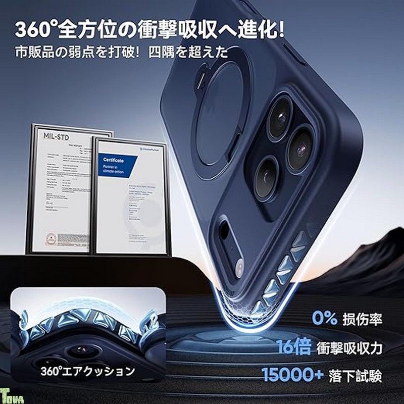 2025最高 -定点360度回転 CASEKOO iPhone 17 Pro 用 ケース MagSafe対応 米軍MIL規格 360°全方向耐衝撃 高耐久性 横縦両立 角度自由調整 最大25 W急速充電対応 指紋防止 マット仕上げ 黄変防止 半透明