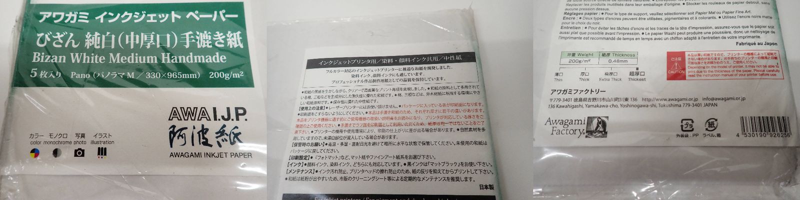 アワガミ インクジェット ペーパー びざん 純白 中厚口 手漉き紙 入り パノラマM 四方耳付 R 2505 278