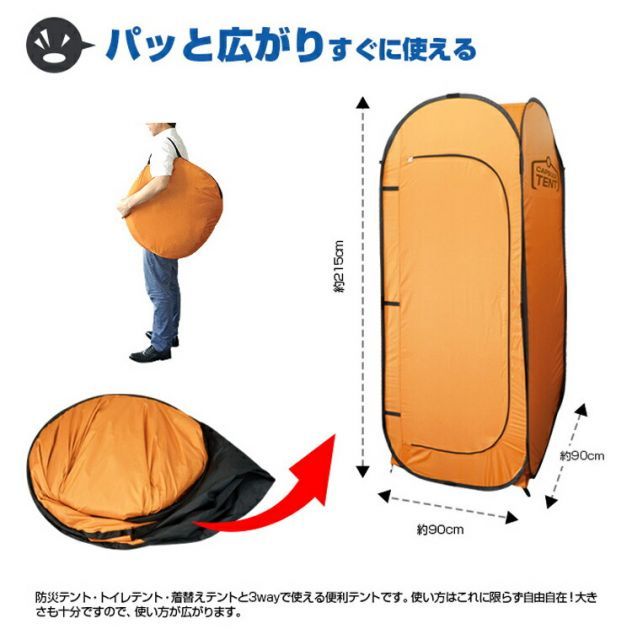 プライバシー確保に!どこでも簡単に設置可能!そこが個室に早変わり!テントはワンタッチで組み立て可能。特に難しい作業無くカンタンです。