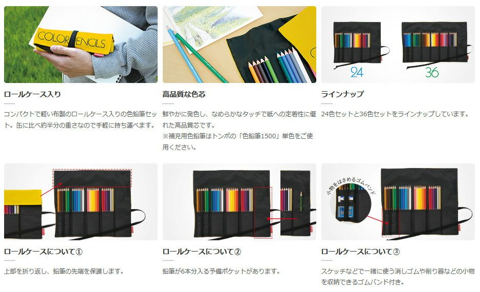 トンボ鉛筆 ロールケース入 色鉛筆 NQ CR 36 C セット