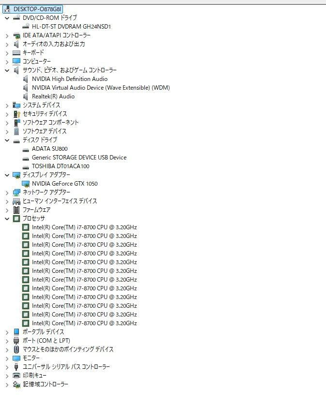 ・CPU:インテル core i7-8700 @3.20GHz