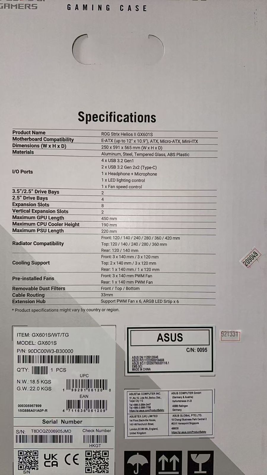 ASUS ROG Strix Helios II EATXミッドタワーゲーミングケース 921331