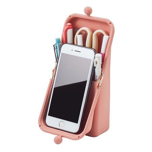 シリコーン製の縦型がま口ペンケースです。人気のくすみカラーで新登場!金具部分も大人カワイイ&高級感のあるゴールドカラー仕上げにグレードアップしました。置くだけでピタッとくっつき倒れない。本体底面の吸盤でピタッとくっつき、空気のチカラでしっかり吸着します(※凹凸のないフラットな面に吸着した場合、垂直方向で3kgの引っ張り強度)。外すときはワンタッチで簡単に外れます。タテにもヨコにもスマホが置ける、大容量でガバッと開くがま口タイプ。シリコン製なので文房具以外に洗面用品や化粧品を入れるのにも便利です。【検索ハッシュタグ】#シリコン#エアピタ