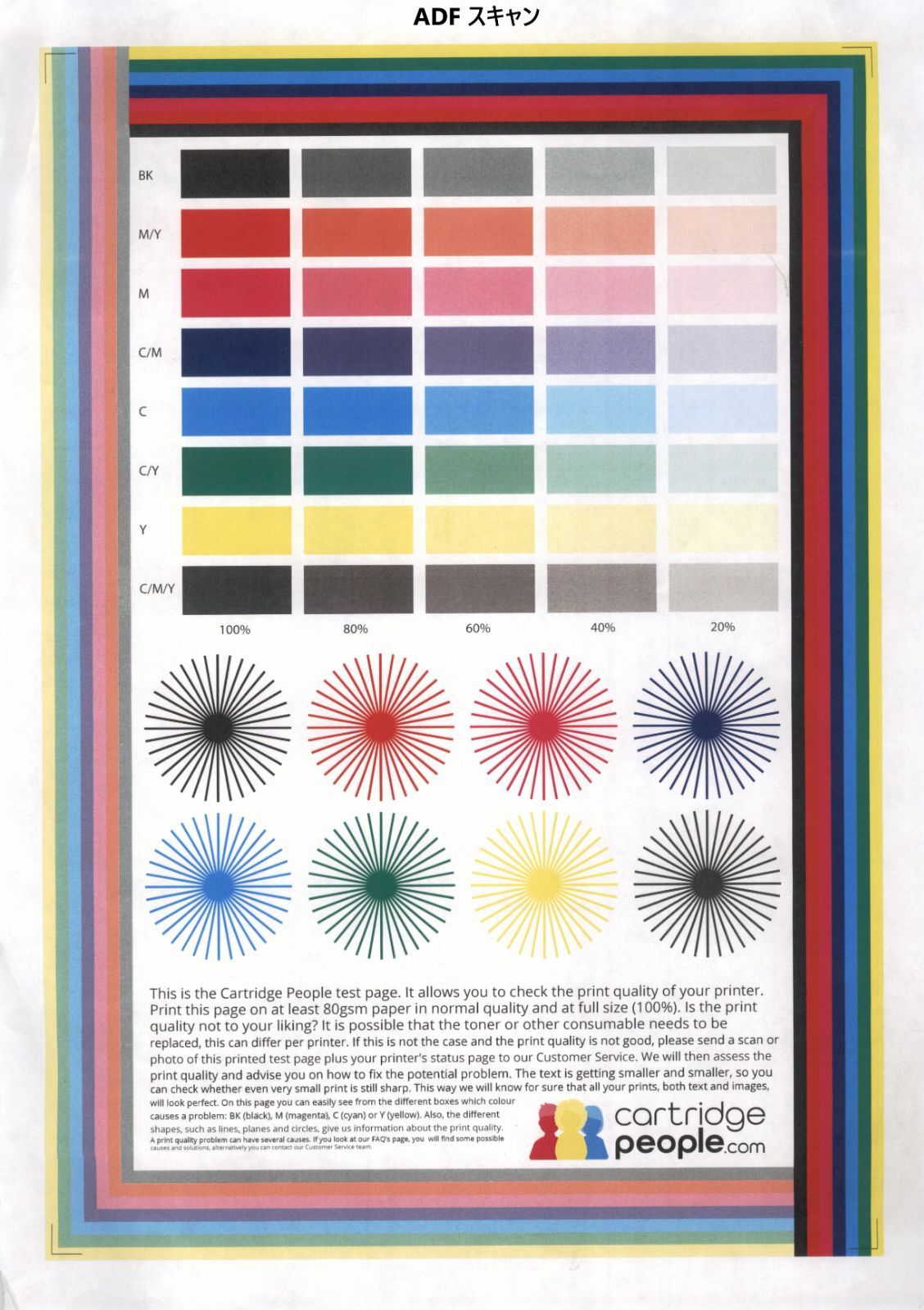 スキャン品質は非常に良好で、ADF・フラットベッドともに正常動作を確認しました。