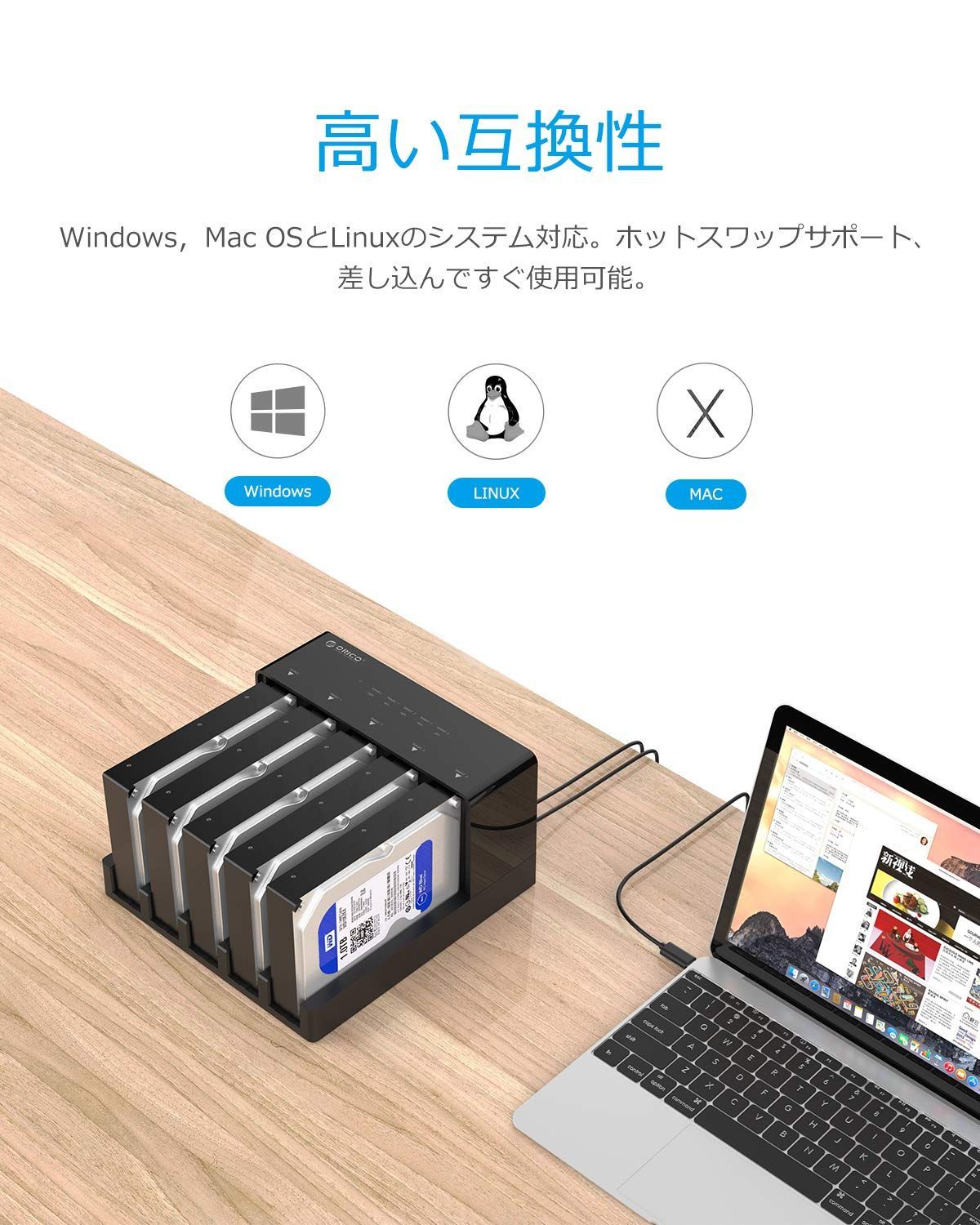 電源アダプター付 高放熱 工具不要 ブラック ドライブケース HDDコピー機能付き USB 3.0接続 16 TB 5ベイ HDD SSD対応 6558 US 3 3.5インチ 2.5 ハードディスクケース ORICO