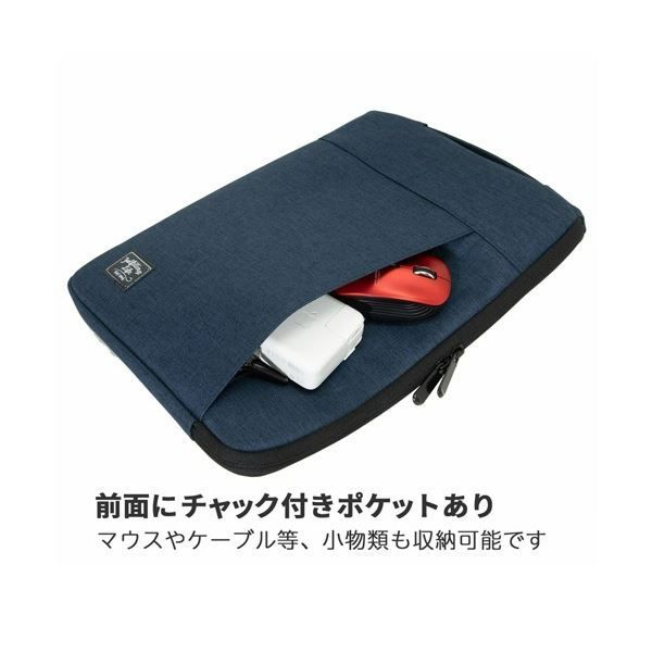 ●前面にチャック付きポケットあり。マウスやケーブル等、小物類も収納可能。
