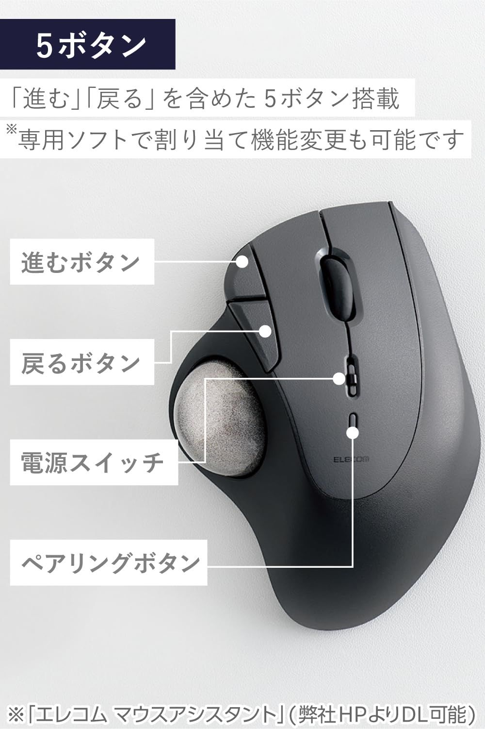 エレコム ワイヤレス トラックボール マウス Bluetooth IST イスト シリーズ 5ボタン 親指操作 人工ルビー支持 Windows Android mac iPad Chrome ブラック 1 M-