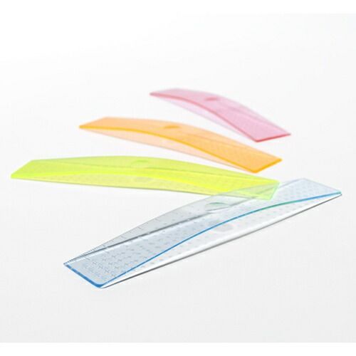 アーチルーラーはちょっと曲がった定規。曲がっているので押さえやすく、取り上げやすい。また、ペンで引いた線のインクが定規の下ににじみにくく、机の上で迷子になっても見つけやすい。〈2007年グッドデザイン賞〉【検索ハッシュタグ】#定規#ルーラー