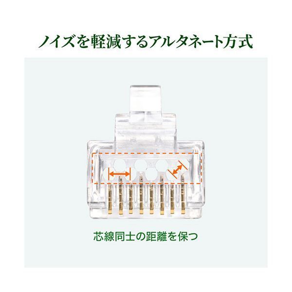 ■対応カテゴリ・規格:カテゴリ6(1000BASE-TX)、カテゴリ5e(1000BASE-T)、カテゴリ5(100BASE-TX)、カテゴリ3(10BASE-T)適合