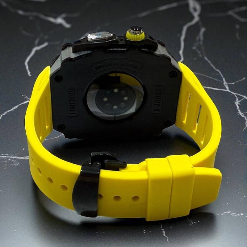 アップルウォッチケース フォージドステンレス ラバー 互換性対応 カスタム カバー 保護 ギフト 46mm ベルト バンド セット series 10 11 メンズ レディース 贈り物 イエローブラック