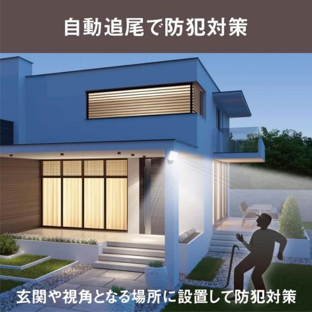 センサー探知方向に自動でライトが動くセンサーライトです。