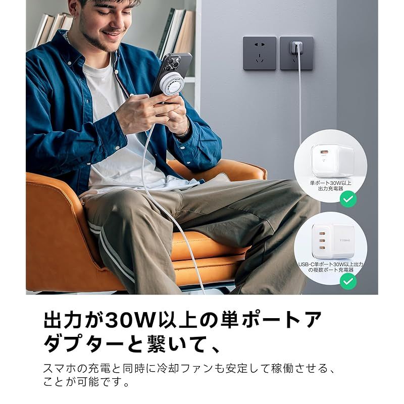TORRAS ワイヤレス充電器 冷却ファン付き マグセーフ充電器 QI2対応 ペルティエ素子 15w出力 1.5mケーブル付き 360°回転式スタンド コンパクトサイズ 30W以上の出力対応単ポートアダプターが必要