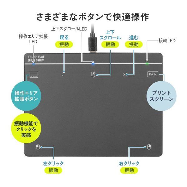 ●パソコンを指でタッチ操作できるUSB接続の有線タッチパッドです。