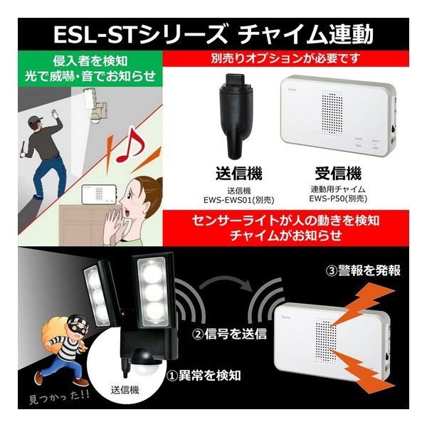 ELPA エルパ 防犯ライト ソーラー充電式センサーライト 2灯 800ルーメン ESL 312 SL 2662141