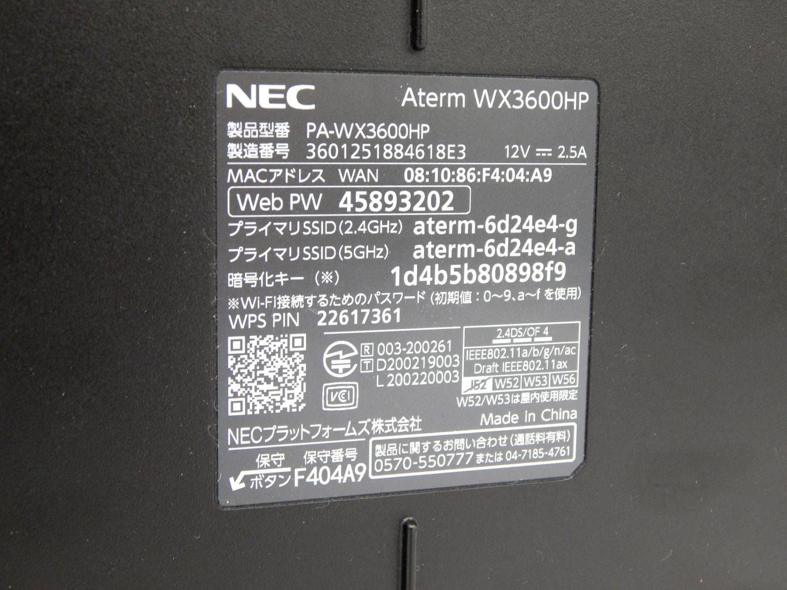 □商品名:NEC 無線LANルーター Aterm PA-WX3600HP 次世代規格Wi-Fi 6+安定通信機能 搭載