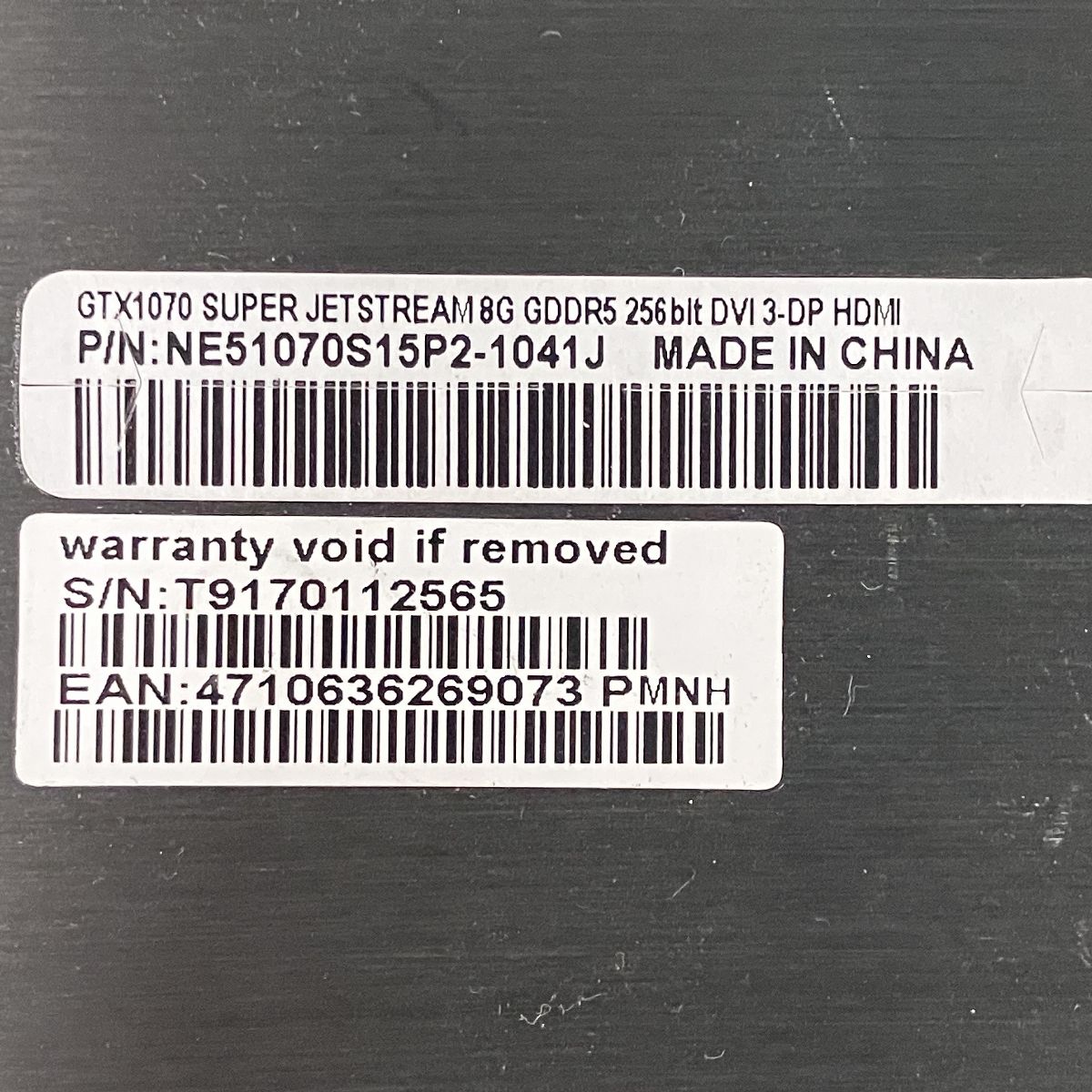 本体シールにはGTX1070 SUPER の記載がございますが、