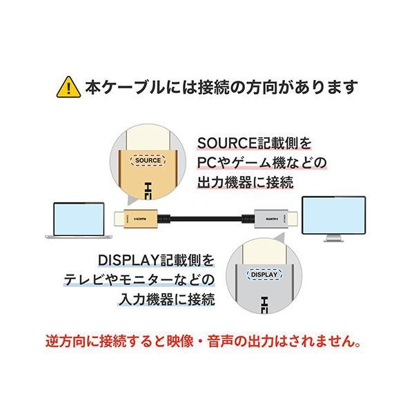 銅線のみのHDMIケーブルに比べ、伝送損失が少なく、ノイズの影響を受けにくいため、安定した長距離伝送が可能です。