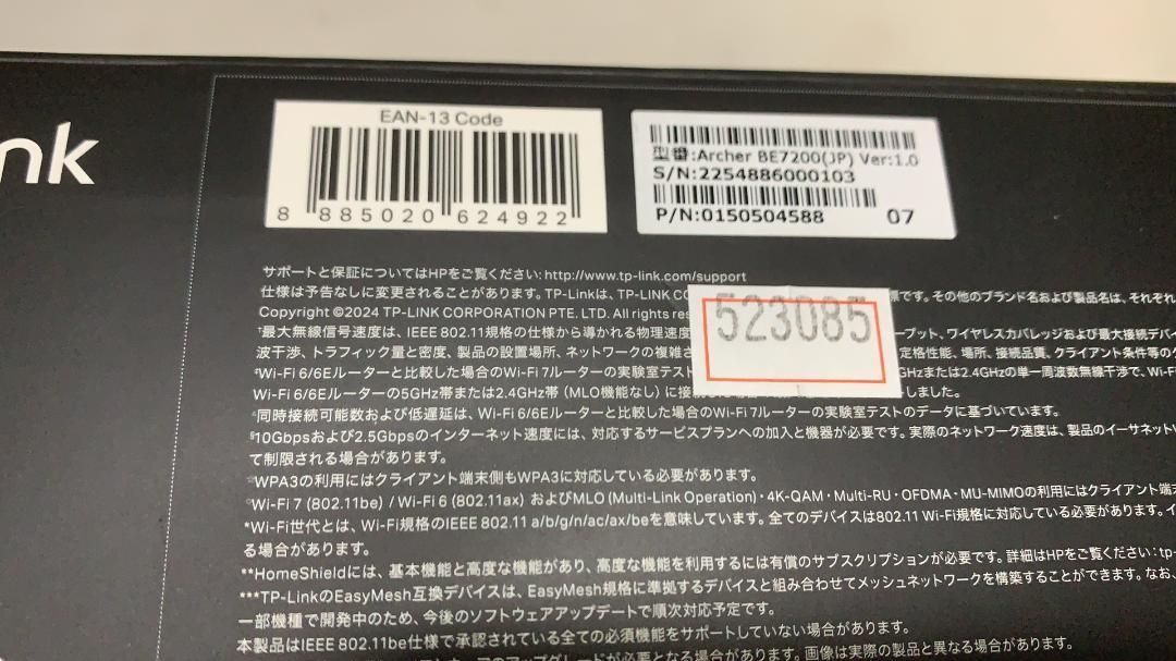523085 TP-Link Archer BE 7200 デュアルバンドWi-Fi 7ルーター
