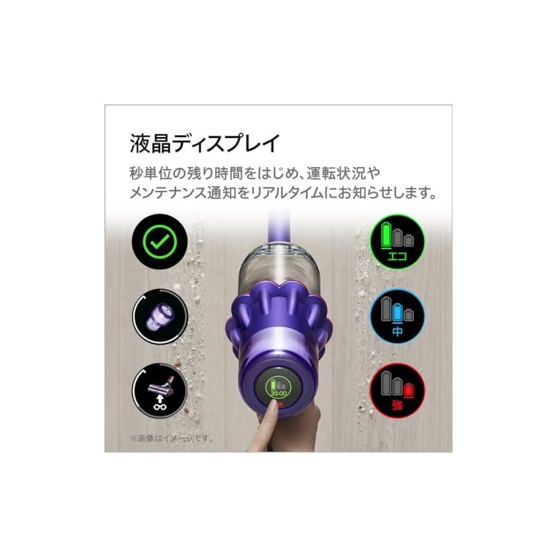 【リアルタイムな表示で、効率的に掃除】液晶ディスプレイが、現在の吸引モードや秒単位の残りの運転時間を表示し、効率的な掃除を可能にします。 また、フィルターのメンテナンス時期や、異物の詰まりなどのトラブルもお知らせします。
