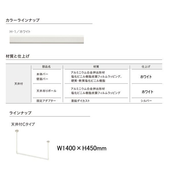 ハンギングバー H 1 天井付 Cタイプセット ホワイト 約W 1400 mm 450