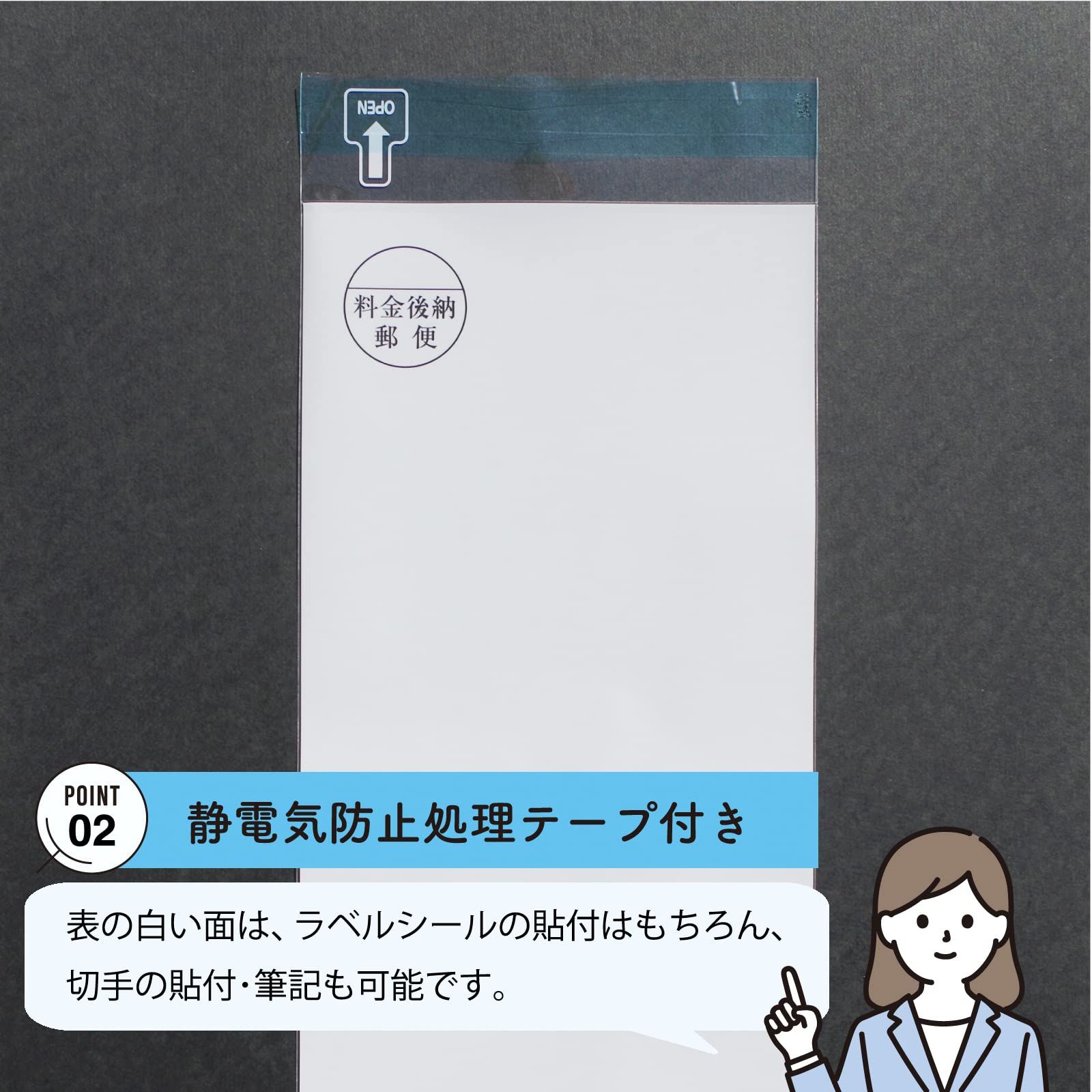 表面印刷可/筆記可/静電気防止テープ付で封緘に便利です!/料金マーク付きで切手貼り付け不要!