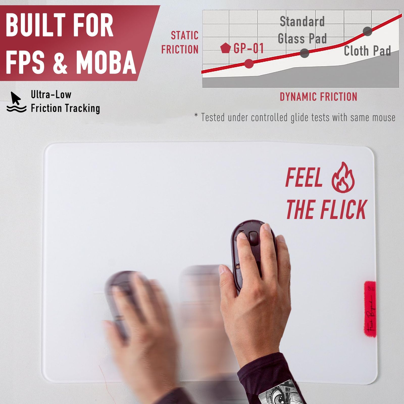 Flash Beyond Glass ゲーミングマウスパッド - 滑り止めゴムベース付きプレミアムガラスパッド - 滑らかで正確なトラッキング、高速ゲーム用の丈夫な表面、FPSプレーヤーに最適 (ブラック-50 x 40cm)