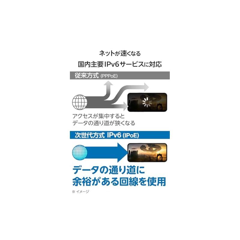 ■無線伝送速度[802.11be(draft)](理論値):IEEE 802.11be(draft):5GHz帯 最大2882Mbps 2.4GHz帯 最大688Mbps(※) ※受信は最大574Mbps、送信は接続機器が4096QAM通信対応の場合、最大688Mbps