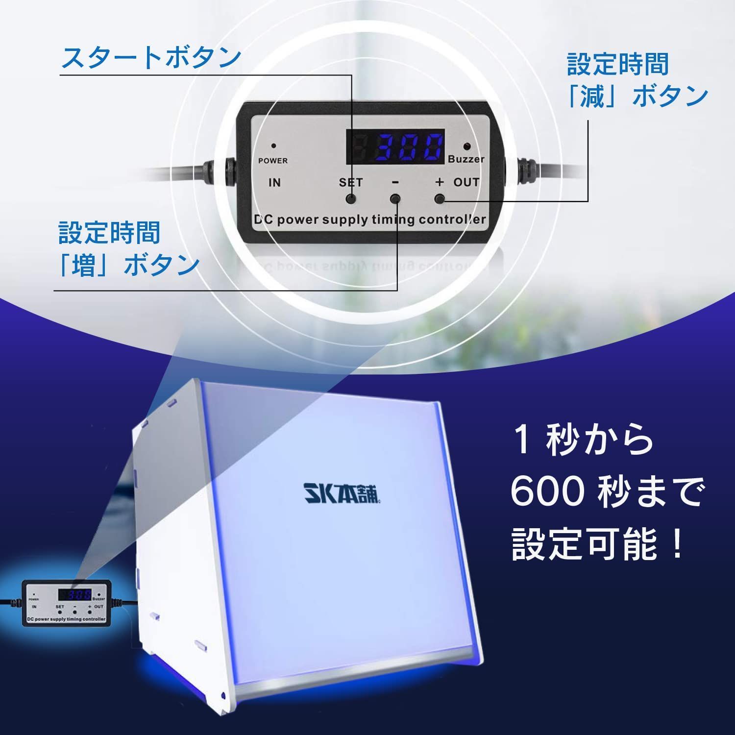 『便利なタイマー機能付き』1秒単位で硬化時間の設定が可能で、長時間放置による硬化のし過ぎを防ぎます。設定可能時間は1~600秒です。