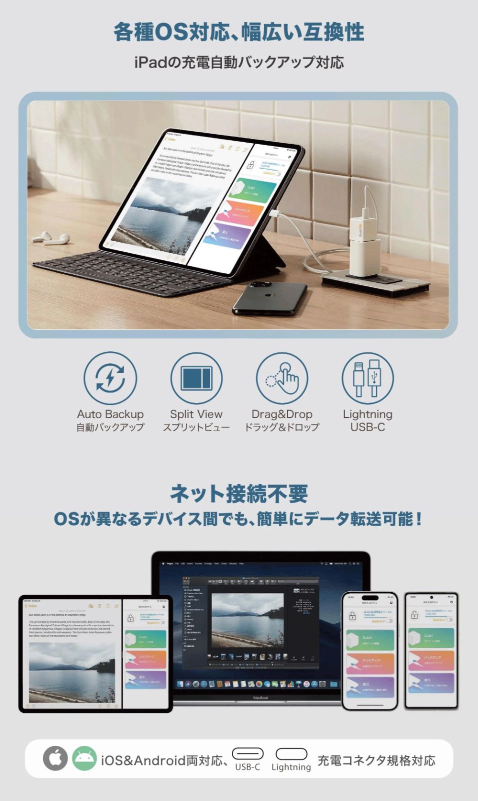 ●Qubiiと併用する充電器とケーブルはApple純正もしくはMFi認証品をご使用ください。