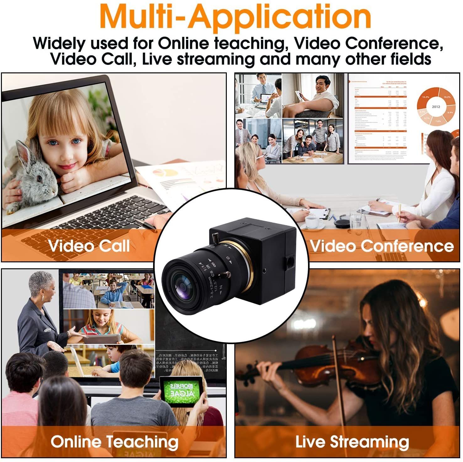 ELP高速 USB 2.0 高解像度 PCカメラ 4倍 光学ズーム Webカメラ:プラグ&プレイ はどこにでも直接インストールして使用できます。可変フォーカス USBカメラは非常に鮮明な5メガピクセルのフルHDを提供し、非常に鮮明な画像をキャプチャし、1944/15 fpsのビデオを記録します。機械設備、オールインワンマシン、POS機器、STB、スマートボックスTVボックス、アドバイスプレーヤー、LEDディスプレイ、自動販売機、セーフティボックス、ノートブック、ビデオドアホン、MIDなど、あらゆる種類の機械に使用されます。タブレットの外部、医療機器、地方警察など。ELP 光学ズーム Webカメラ 500万画素 4倍ズーム ウェブカメラ 1944P 2.8-12mm可変焦点レンズ Web会議用カメラ 5mp CMOS OV5640 広角Webかめら Windows Linux Android Raspberry pi対応 パソコン用カメラ 外付け Zoomカメラ 可変フォーカス USBカメラ 家庭会議 ゲーム実況授業 焦点距離アパチャー調整可能 ズームカメラ。