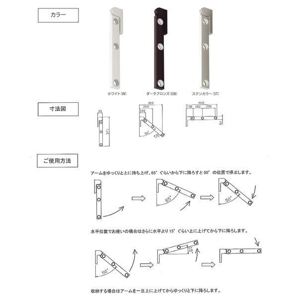 商品名:ナスタ エアアーム KS-NEX001-600 1セット2本入(ホワイト・ステンカラー・ダークブロンズ)
