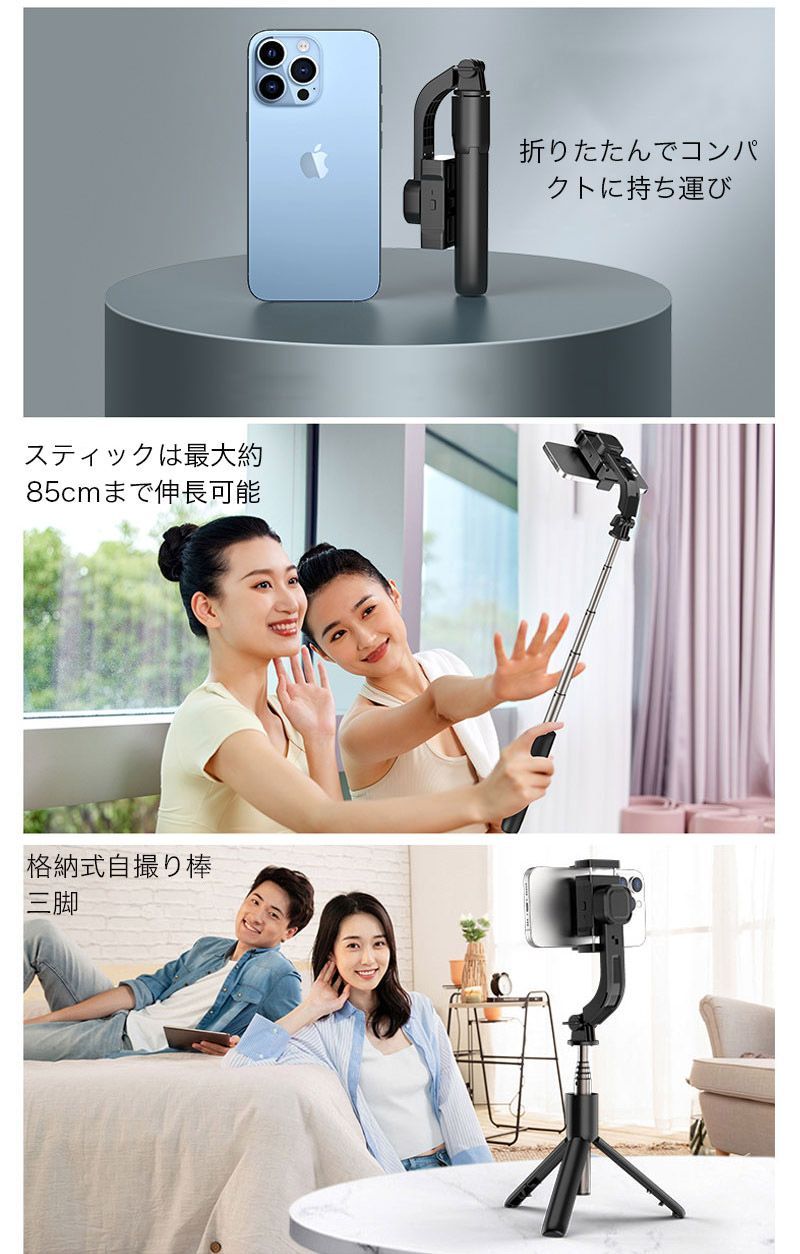 スマホ スタビライザー リモコン付き ポータブル 雲台 三脚 自撮り棒 付き 角度 位置 固定 縦向き 横向き 歩きながら撮影 LEDライト付