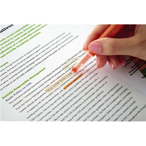 ●上下持ち替え不要!3waymarker/従来のツインマーカーと違い、カブトムシの角のようなペン先1つで、太線・細線・二重線(囲み線)と3種類の線が引けます。ペン先を使い分けるためにペンの上下を持ち替える必要がありません。●文字囲みには二重線/文字を囲むようにマークできる二重線は、コピー時におすすめ。マーカーの色が文字にかぶらないため、見やすさを保てます。●コクヨデザインアワード受賞作品(2007年優秀賞)を元に、日常使いやすい規格にアレンジし生まれた製品です。【検索ハッシュタグ】#マーカー#まーかー#多機能#蛍光#蛍光ペン