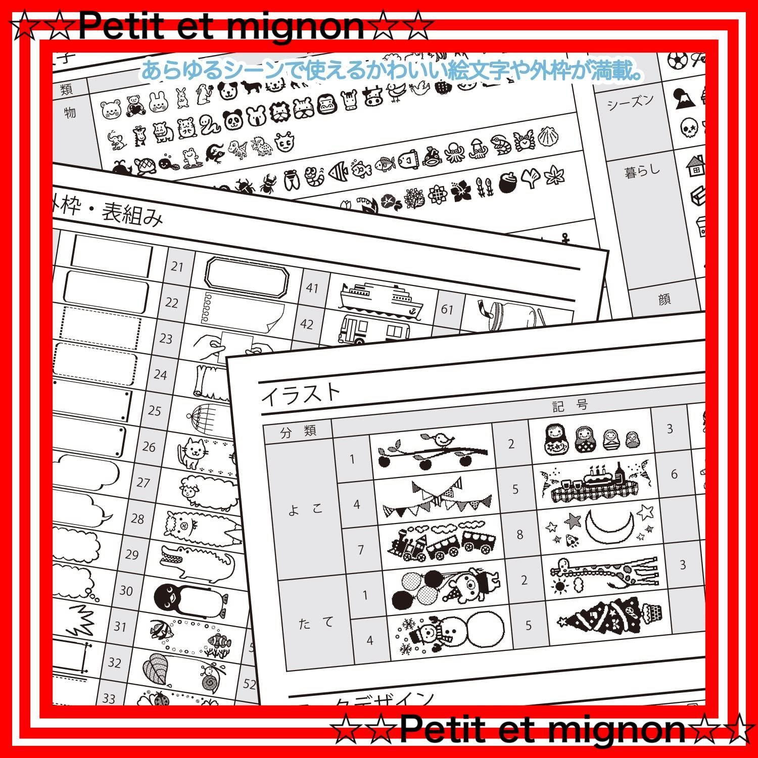 あらゆるシーンで使えるかわいい絵文字や外枠が満載。