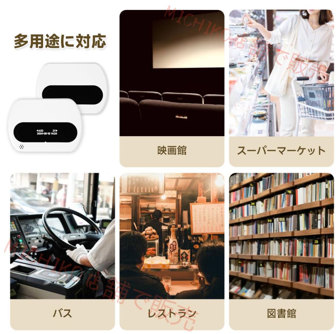 適用シーン:居酒屋、レストラン、飲食店、喫茶店、デパート、会社、病院、マーケット、スーパー、博物館、図書館など。