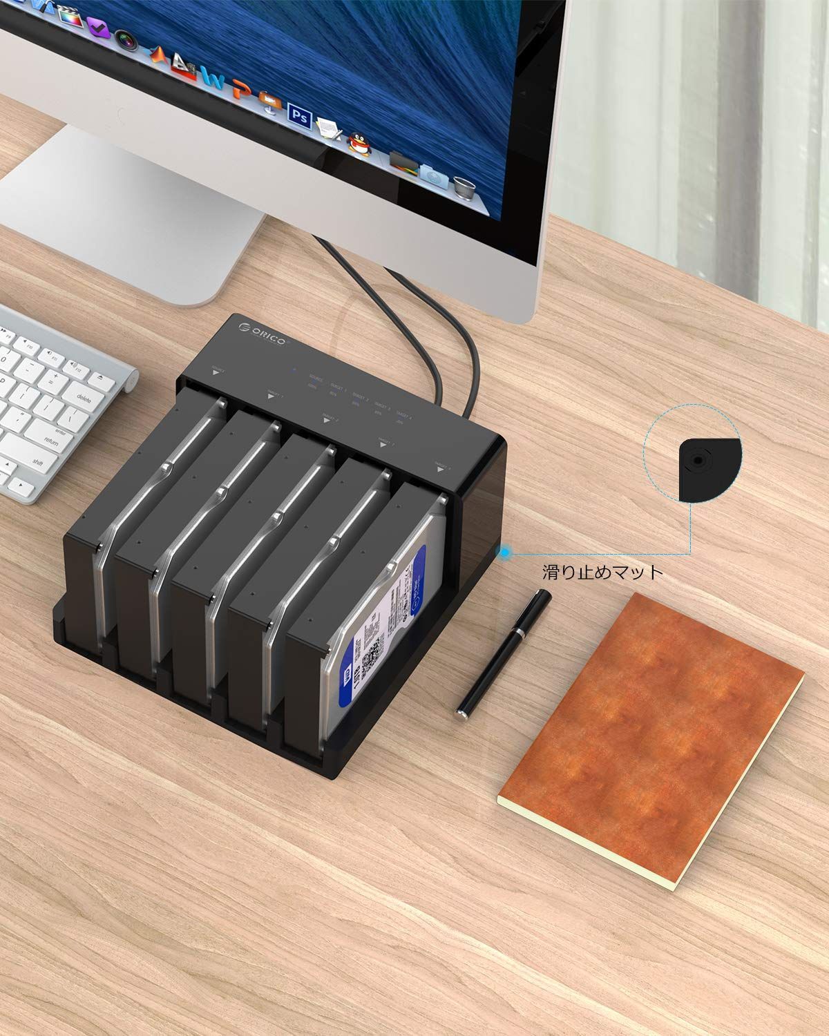ORICO ハードディスクケース 2.5 / 3.5インチ HDD/SSD対応 16TB*5ベイ USB3.0接続 HDDコピー機能付き ドライブケース 工具不要 高放熱 電源アダプター付 ブラック 6558US3