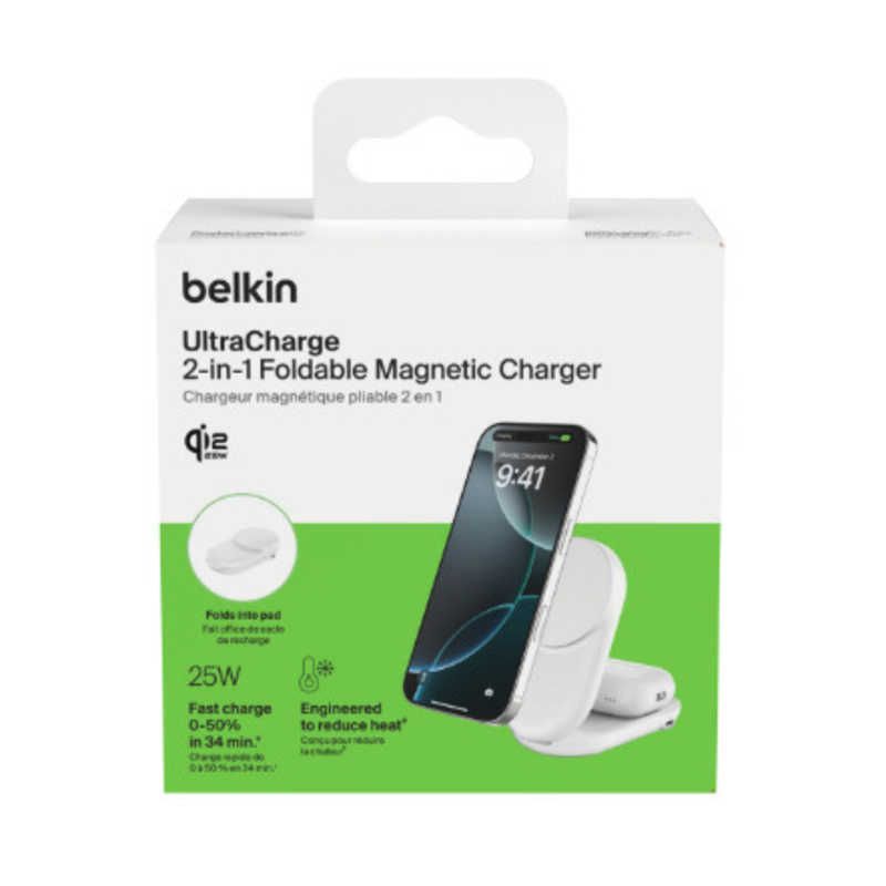 BELKIN UltraCharge Qi 2 25 W 2-in-1 折りたたみ式マグネット充電器 ラウンド型 ホワイト WIZ 039 dqWH